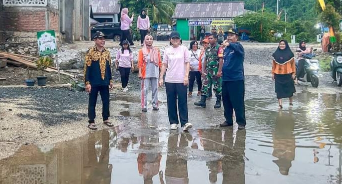 “Sejak Hari Kamis, ibu sudah kunjungi desa-desa terdampak banjir dan bagikan bantuan sosial,” kata seorang staf Ketua TP PKK tersebut.