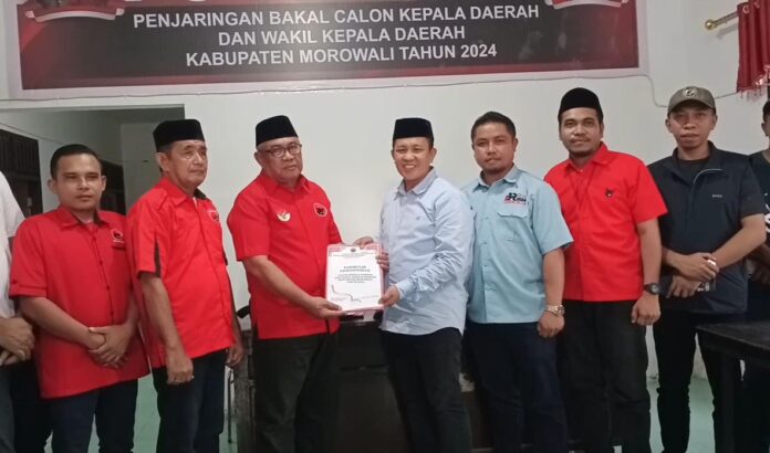 Iksan yang didampingi puluhan tim kerjanya datang langsung di Sekretariat Partai Demokrasi Indonesia Perjuangan (PDIP) Kabupaten Morowali dan Partai Keadilan Sejahtera (PKS) Kabupaten Morowali, Senin (29/4/2024) untuk menyerahkan dokumen sebagai syarat pendaftaran Bakal Calon Bupati Morowali.