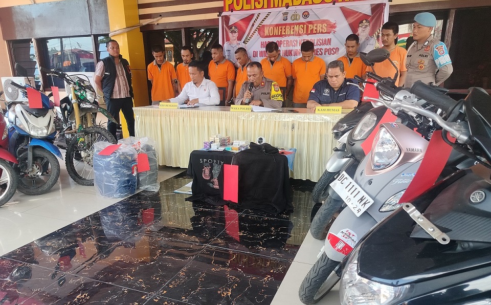 “Ada sembilan unit motor berbagai jenis yang berhasil diamankan serta satu buah mobil yang digunakan untuk melakukan aksi mereka,” tambah Wakapolres yang didampingi KBO Reskrim Ipda Habibi dan Kasi Humas Polres Poso AKP. Basirun Laele.