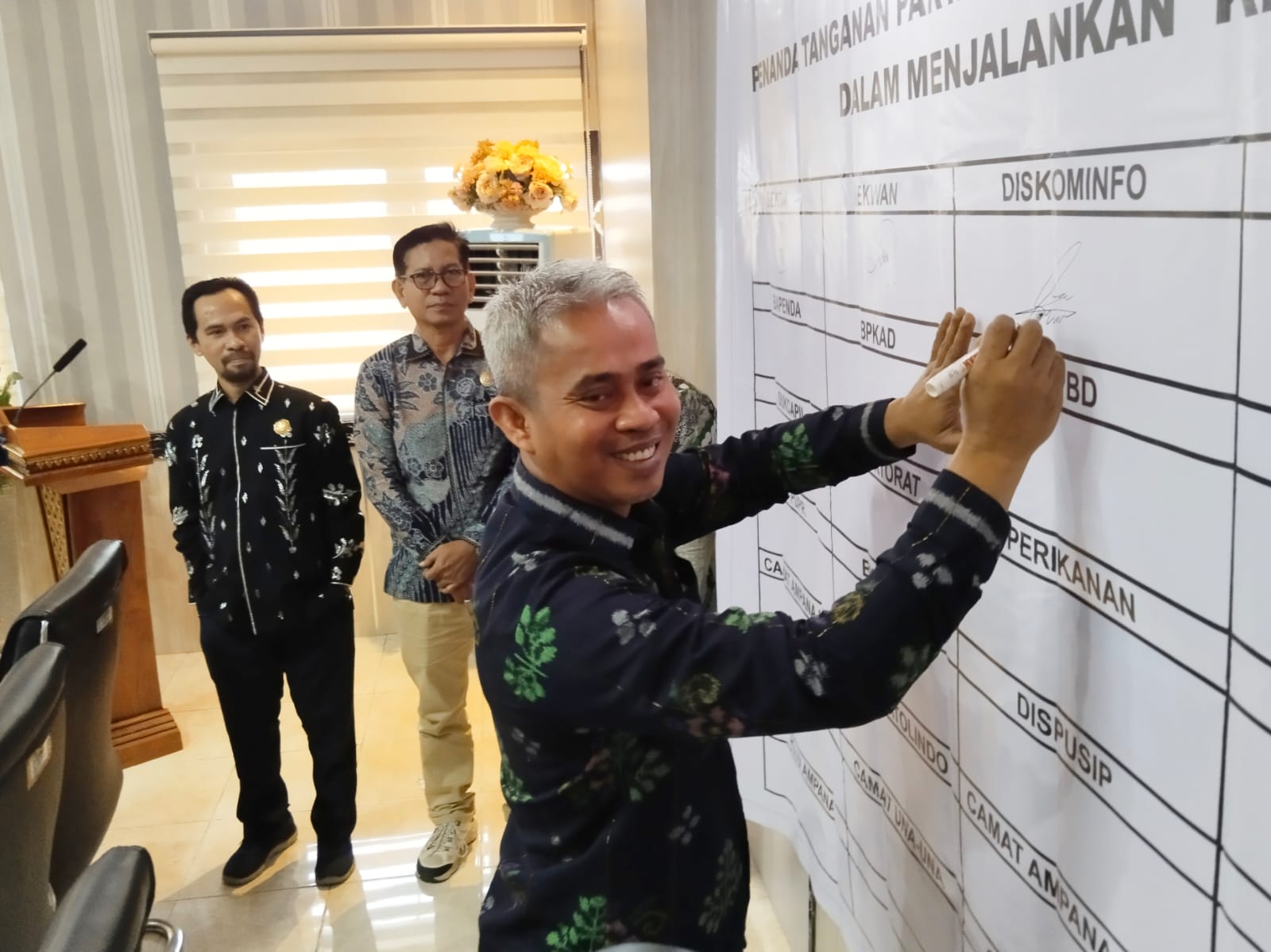 Turut hadir, Kepala Dinas Komunikasi Informatika Persandian Dan Statistik Provinsi Sulawesi Tengah Sudaryano lamangkona, s.sos.,m.si,Ketua Komisi Informasi H. Abbas H A Rahim,S.H.Med