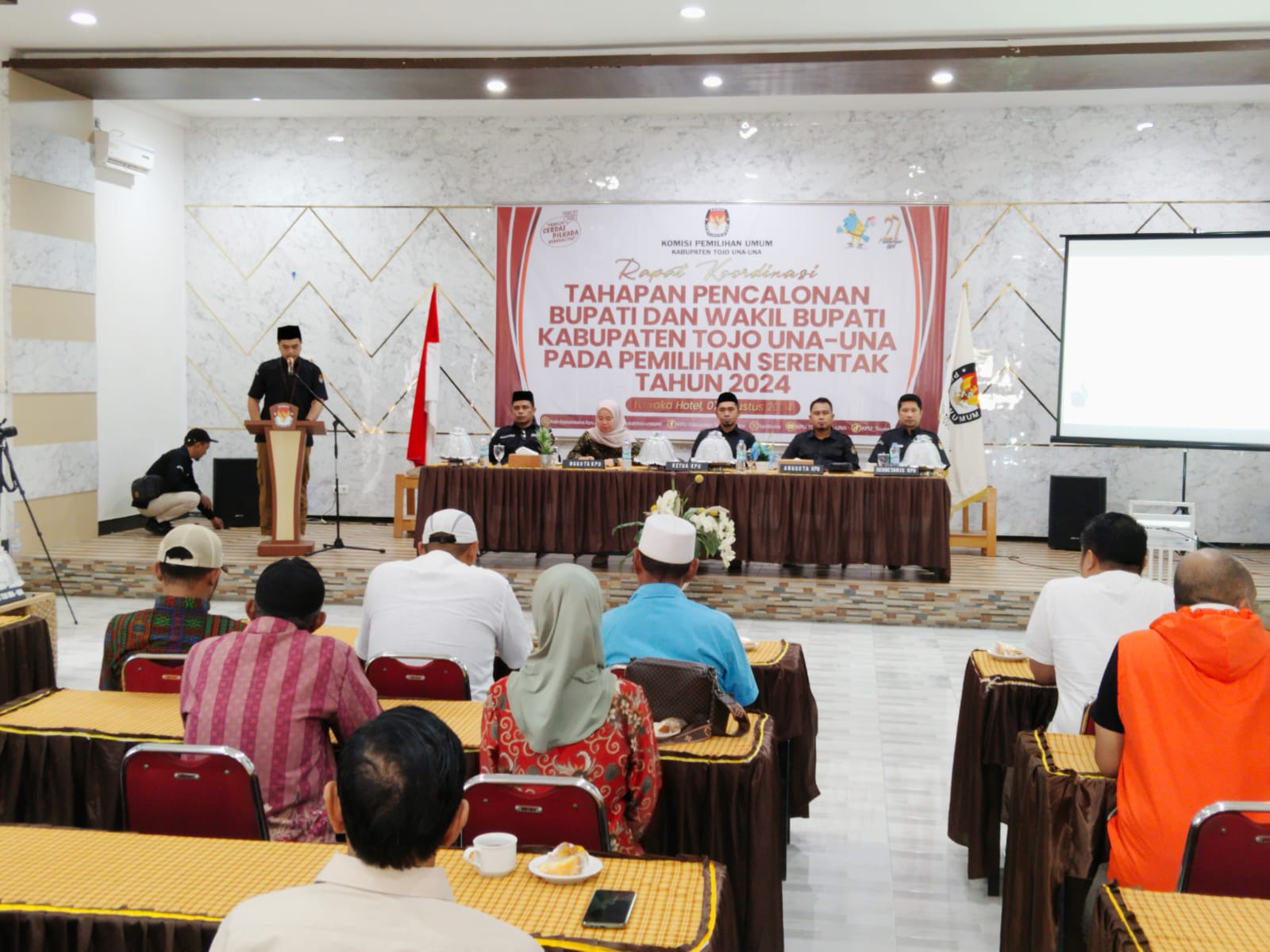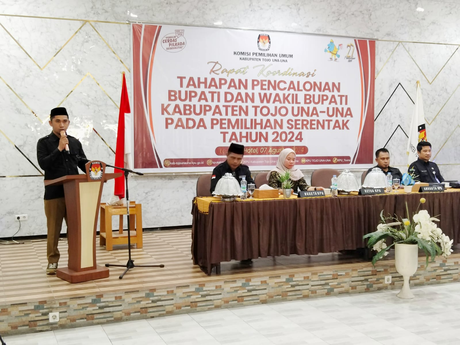 Berdasarkan Peraturan Komisi Pemilihan Umum Nomor 8 Tahun 2024 tentang pencalonan Gubernur dan Wakil Gubernur, Bupati dan Wakil Bupati, serta Walikota dan Wakil Walikota dan dalam rangka pelaksanaan Rapat Koordinasi Tahapan Pencalonan Bupati dan Wakil Bupati Kabupaten Tojo Una-Una pada Pemilihan Serentak Tahun 2024.
