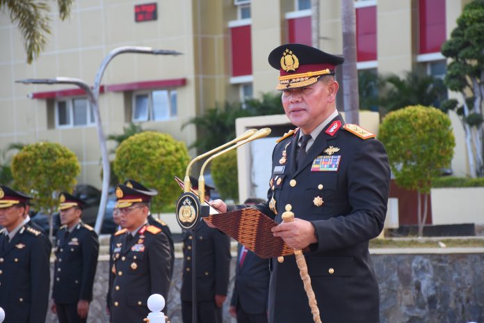 Kapolda Irjen Pol Agus Nugroho bertindak selaku Inspektur Upacara dan diikuti Wakapolda Sulteng Brigjen Pol Soeseno Noerhandoko, pejabat utama dan seluruh personel Polda Sulteng.