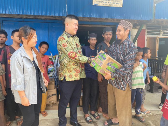 Perwakilan PT GNI Jiang menyerahkan bantuan ini kepada pimpinan kedua Lembaga Kesejahteraan Sosial Anak (LKSA) tersebut yang di terima masing-masing Ustadz Ikhsan Darwis dan Fikson Lakawa. Sedikitnya 1,2 ton beras diserahkan PT GNI beserta bahan makanan lainnya seperti telur, minyak goreng, mie instan, biskuit, daging olahan dan lainnya.