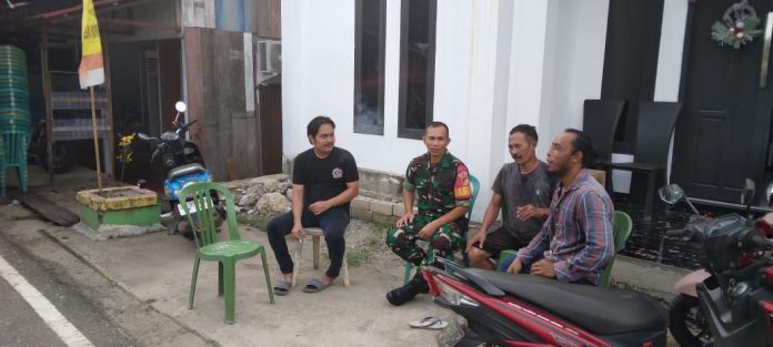 POSONEWS.ID– Babinsa Koramil 1311-03/Petasia, Sertu Suleman, melaksanakan komunikasi sosial (Komsos) di rumah Bapak Jeck, salah satu warga Desa Korololaki, Kecamatan Petasia, Kabupaten Morowali Utara.