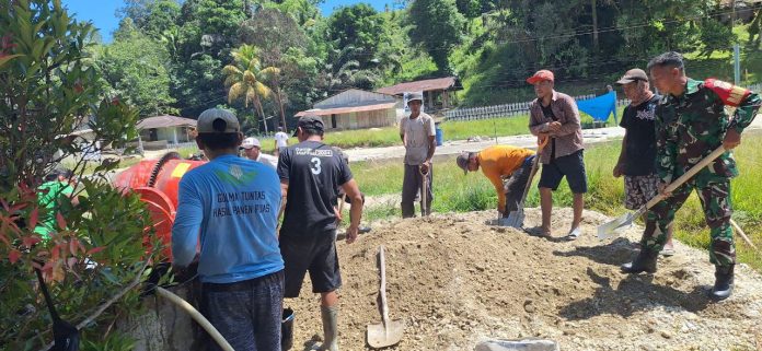 “Kegiatan ini bukan hanya sekadar membantu pembangunan fasilitas olahraga, tetapi juga menjadi momentum untuk mempererat tali silaturahmi antara TNI dan masyarakat. Dengan adanya lapangan futsal ini, diharapkan dapat meningkatkan semangat olahraga dan kebersamaan warga,” ujar Serka Yaber S.