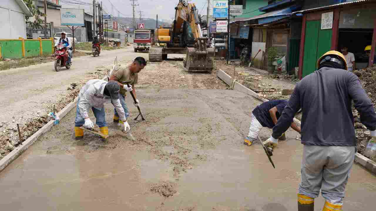 Cakupan pekerjaan yang sudah dilaksanakan sejak 5 hari yang lalu, antara lain pembuatan Rigid Pavement sepanjang 2,3 kilometer dan pemasangan saluran samping (U-ditch) total 6,35 kilometer.