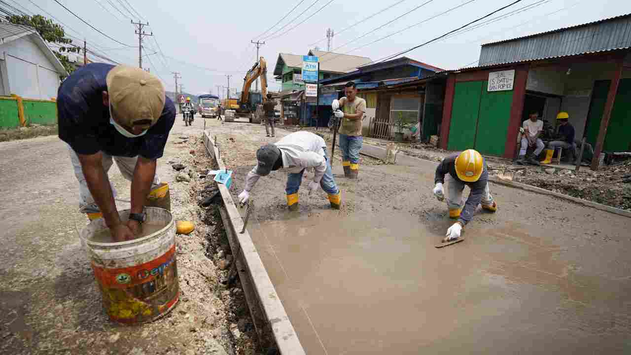 Cakupan pekerjaan yang sudah dilaksanakan sejak 5 hari yang lalu, antara lain pembuatan Rigid Pavement sepanjang 2,3 kilometer dan pemasangan saluran samping (U-ditch) total 6,35 kilometer.
