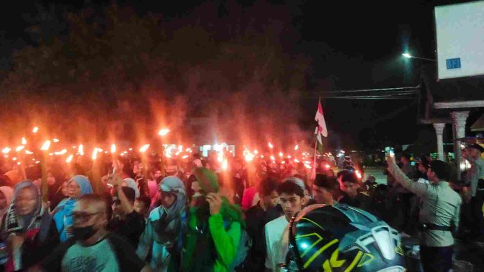 Diketahui, pawai obor dilepas langsung oleh Ketua MUI Kabupaten Poso, KH. Arifin Tuamaka. (ADI).