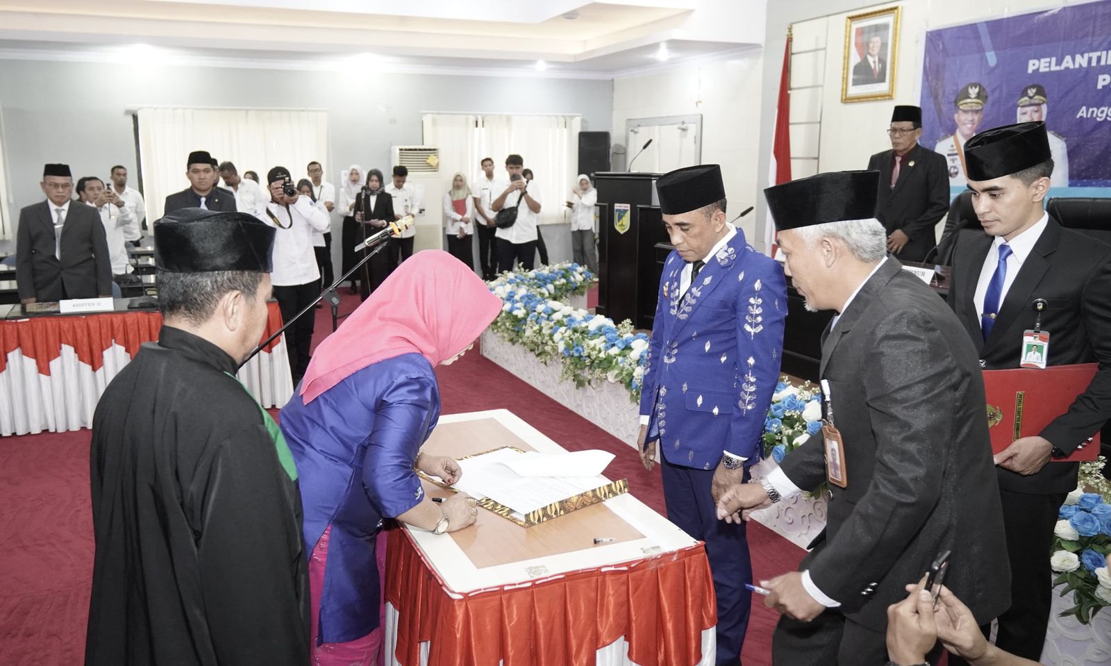 POSONEWS.ID – Gubernur Sulawesi Tengah, Anwar Hafid resmi melantik Siti Norma Mardjanu, sebagai Pengganti Antar Waktu (PAW) Ketua Komisi Informasi Provinsi Sulawesi Tengah periode 2021-2025. Prosesi pengambilan sumpah dan pelantikan berlangsung di Ruang Rapat Polibu, Kantor Gubernur Sulteng, Rabu (12/3/2025), dan disaksikan langsung oleh Wakil Gubernur Sulteng, dr. Reny Lamadjido.