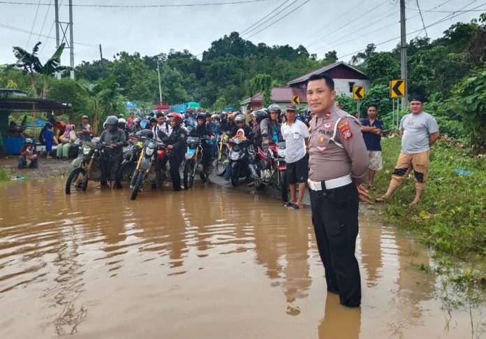 POSONEWS.ID – Di tengah kondisi hujan deras yang melanda di beberapa wilayah Kabupaten Morowali Utara, Satuan Lalu Lintas (Sat Lantas) Polres Morowali Utara dari pantauan media ini di lapangan, menunjukkan aksi sigap dalam mengatur lalu lintas serta melakukan evakuasi korban banjir.