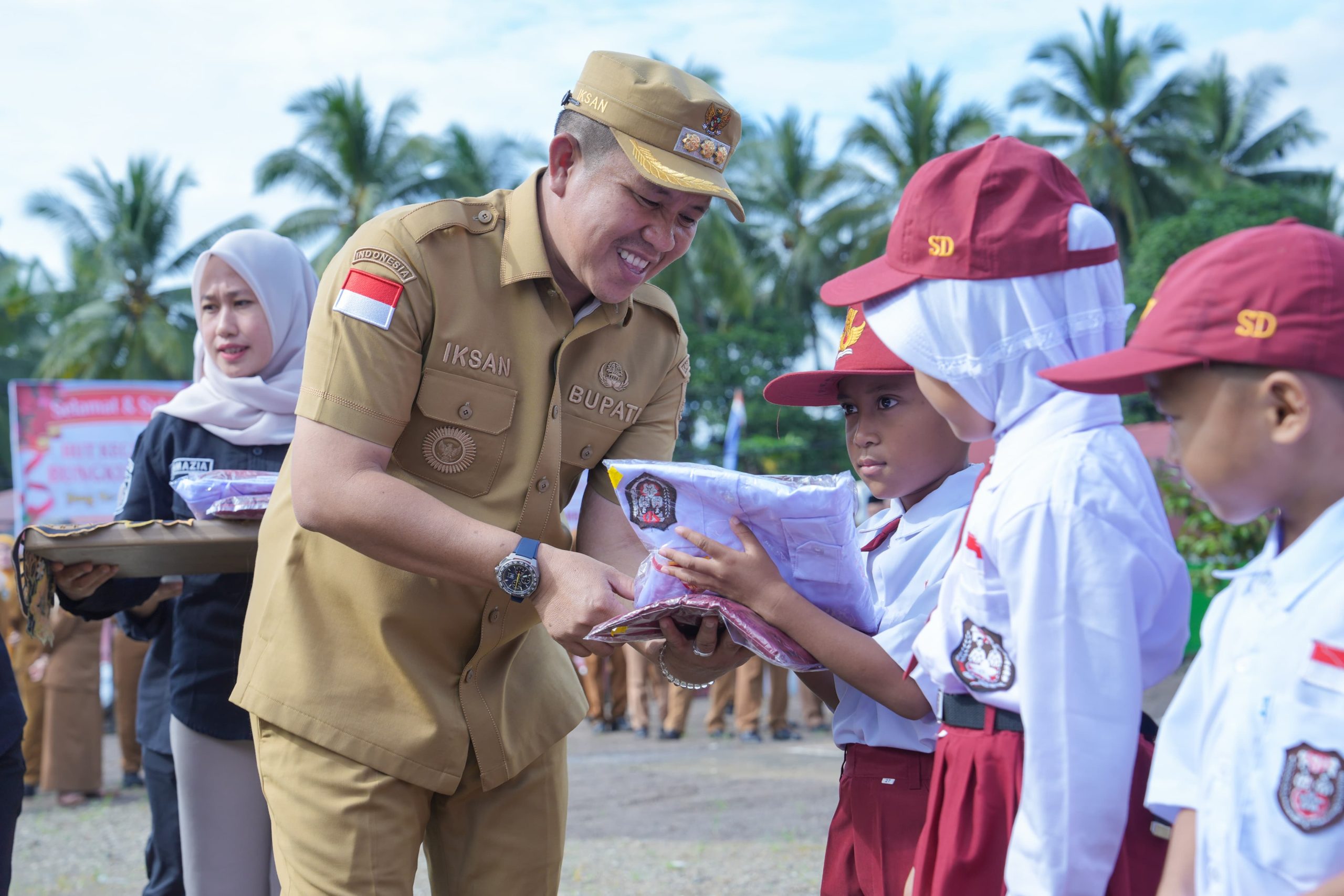 “Ini adalah realisasi dari janji kampanye kami. Setelah menyalurkan beasiswa bagi mahasiswa S1, hari ini kami mulai merealisasikan program seragam sekolah gratis. Ini adalah peluncuran perdana dan akan kami lanjutkan di seluruh kecamatan,” ujar Bupati Iksan dalam sambutannya.