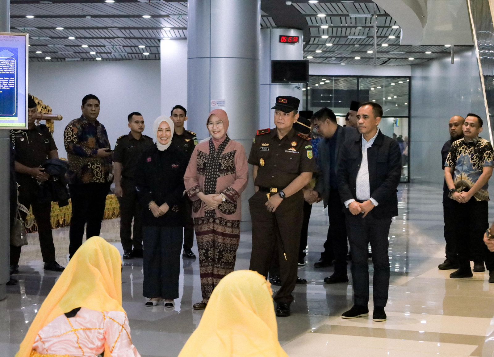 Didampingi Ketua TP-PKK Ny. Sry Nirwanti Bahasoan, Gubernur Dr.Anwar Hafid menyambut langsung Kajati Sulteng dengan prosesi adat pemasangan Siga, simbol penyambutan khas daerah Sulawesi Tengah.