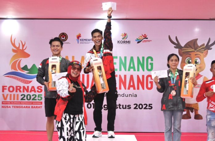 POSONEWS.ID – Prestasi kembali ditorehkan oleh kontingen Asosiasi Instruktur Aerobik dan Fitnes (ASIAFI) Sulawesi Tengah pada ajang Festival Olahraga Rekreasi Nasional (Fornas) VIII yang berlangsung di Nusa Tenggara Barat. Atlet kebanggaan Sulteng, Damar (Dede), berhasil mengukuhkan diri sebagai Juara 1 Nasional dalam kategori Aerobic A3 (usia 19–40 tahun), mengalahkan peserta dari berbagai daerah di Indonesia.