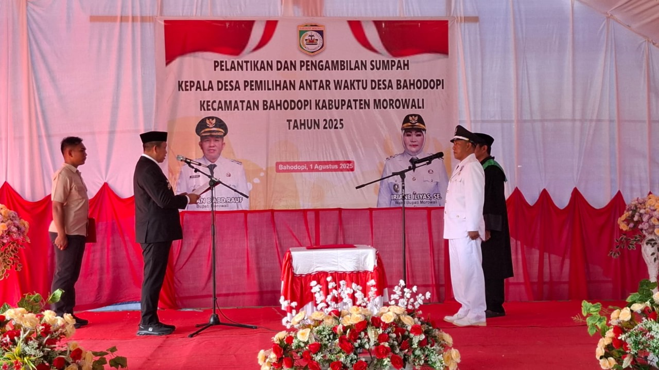 Adapun Kepala Desa Pengganti Antar Waktu (PAW) Desa Bahodopi yang dilantik berdasarkan Surat Keputusan Bupati Morowali Nomor: 100.3.3.2/Kep.0272/DPMDP3A/2025 adalah Suradi, yang terpilih melalui mekanisme pemilihan antar waktu untuk melanjutkan sisa masa jabatan kepala desa sebelumnya sesuai ketentuan perundang-undangan yang berlaku. DRM