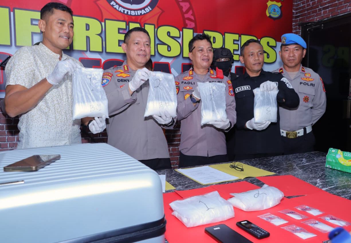 “Tim opsnal langsung melakukan penyergapan di area kedatangan Bandara. Saat digeledah, petugas menemukan enam bungkus besar sabu yang disembunyikan dalam koper berlapis plastik hitam di antara pakaian pelaku, seberat 3,5 Kilogram. Selain itu, diamankan pula dua unit handphone sebagai alat komunikasi pelaku,” jelasnya, Kamis, (7/8/2025).