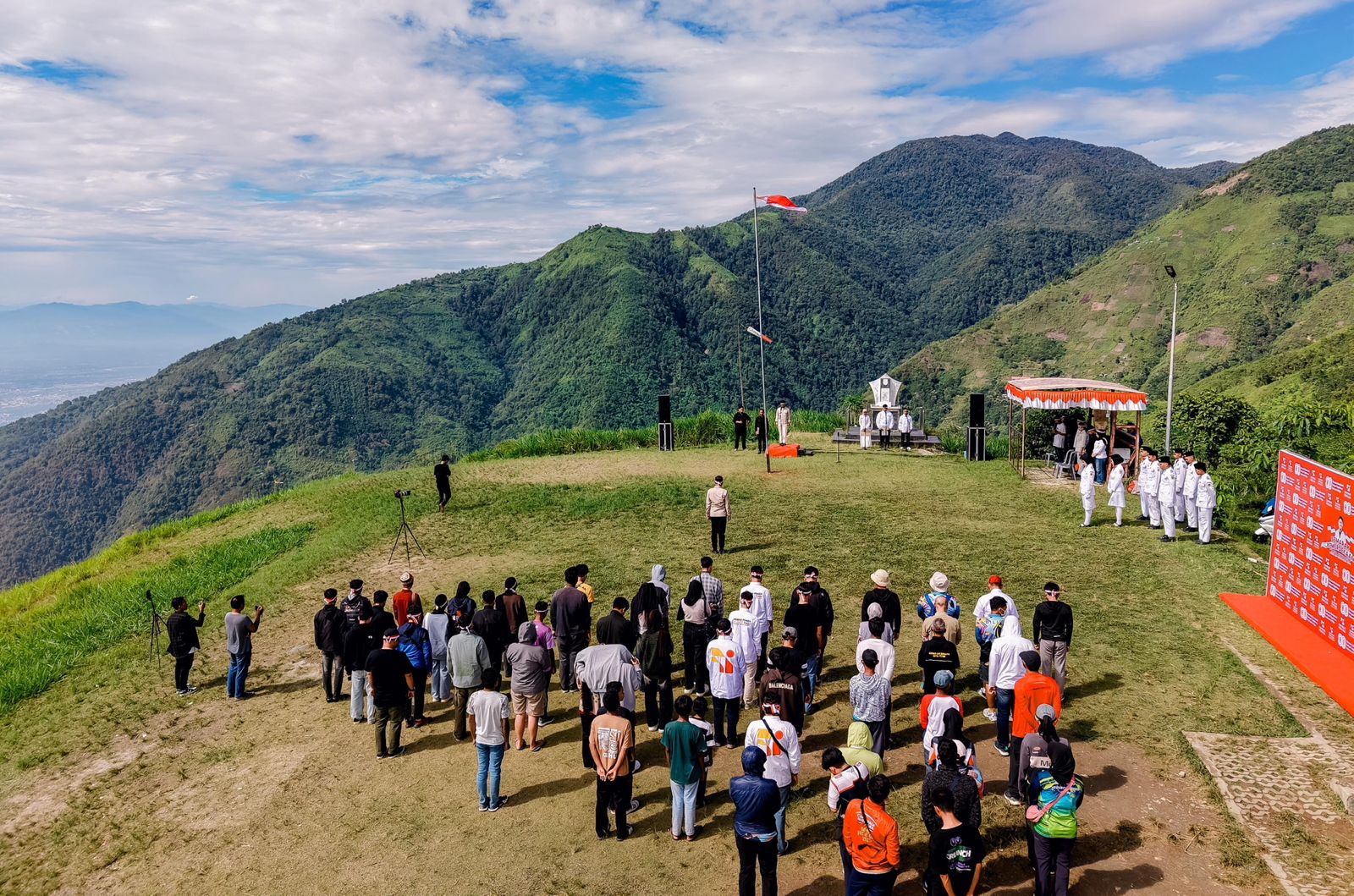 Ribuan warga memadati kawasan Bukit Salena, dari kaki bukit hingga puncak. Mereka bersorak dan bertepuk tangan saat Merah Putih berkibar di udara, menciptakan suasana khidmat sekaligus membanggakan.
