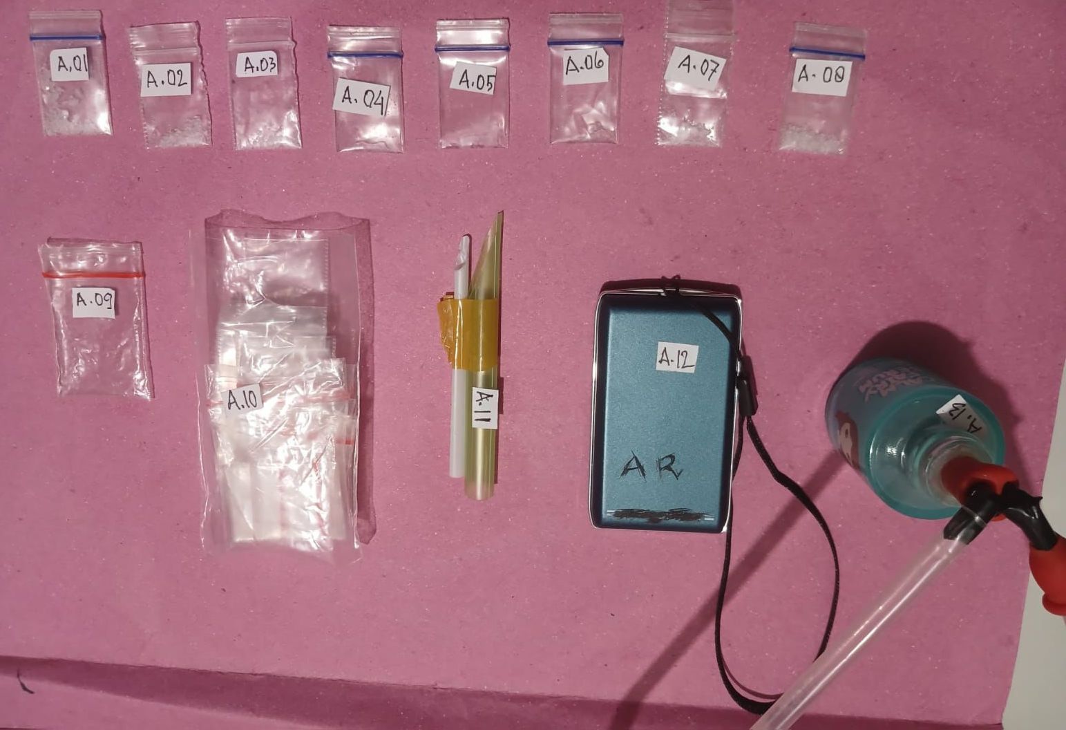 Dari tangan tersangka, polisi menyita 8 paket sabu dengan berat bruto 1,931 gram, satu timbangan digital, plastik klip kosong, dan satu sendok sabu yang dibuat dari pipet plastik.
