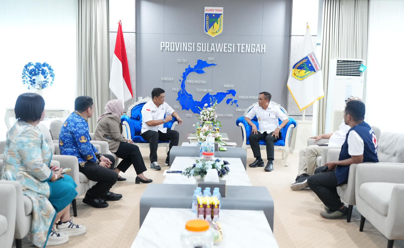 POSONEWS.ID – Gubernur Sulawesi Tengah, Anwar Hafid, menerima audiensi Ketua Palang Merah Indonesia (PMI) Provinsi Sulawesi Tengah, Dr. H. Moh. Hidayat Lamakarate, M.Si., bersama jajaran pengurus di ruang kerjanya, pada Rabu, (17/9/2025).