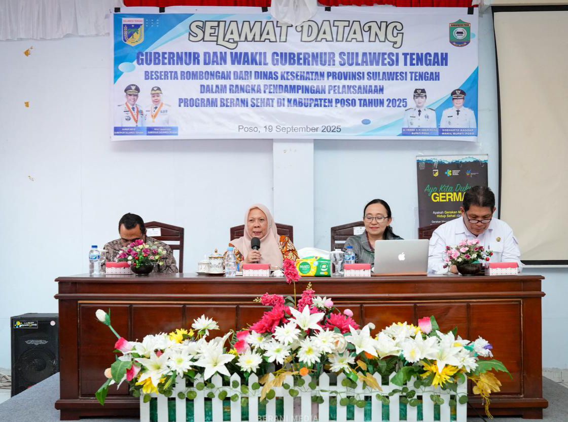POSONEWS.ID – Wakil Gubernur Sulawesi Tengah dr. Reny A. Lamadjido bersama jajaran terkait melaksanakan Evaluasi Program BERANI Sehat yang bertempat di Aula Dinas Kesehatan Kabupaten Poso, pada Jum’at (19/9/2025).