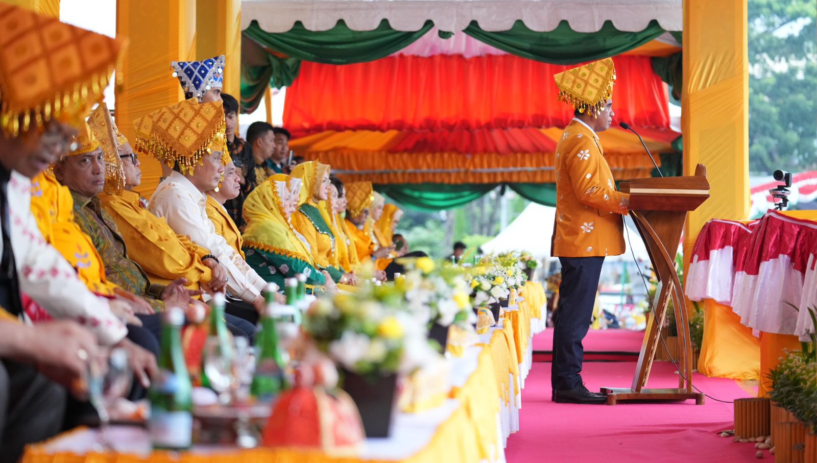 Gubernur bersama rombongan lebih dulu disambut langsung oleh Wali Kota Palu, Hadianto Rasyid, serta Wakil Wali Kota Palu, Imelda Liliana Muhidin. Kehadiran mereka kemudian ditandai dengan prosesi adat khas Kaili, mulai dari pemasangan siga dan sompulu, hingga suguhan tarian tradisional yang menambah semarak peringatan HUT Kota Palu tahun ini.