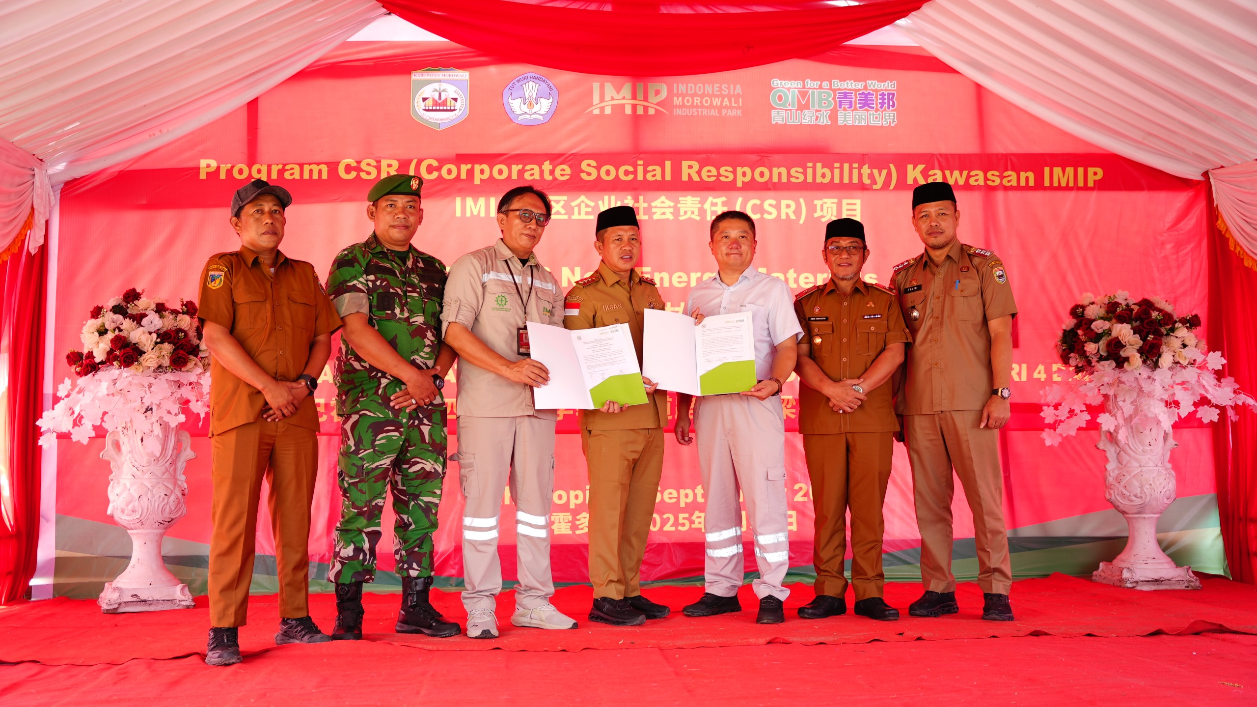 Peresmian dan penandatanganan berita acara serah terima prasarana dilakukan Wakil General Manager dan General Produksi PT QMB, Xu Ding Pang, Manajer CSR PT IMIP, Tommy Adi Prayogo, serta dihadiri langsung Bupati Morowali, Iksan Baharudin Abdul Rauf, di halaman SDN 04 Bahodopi, Selasa (30/09/2025).