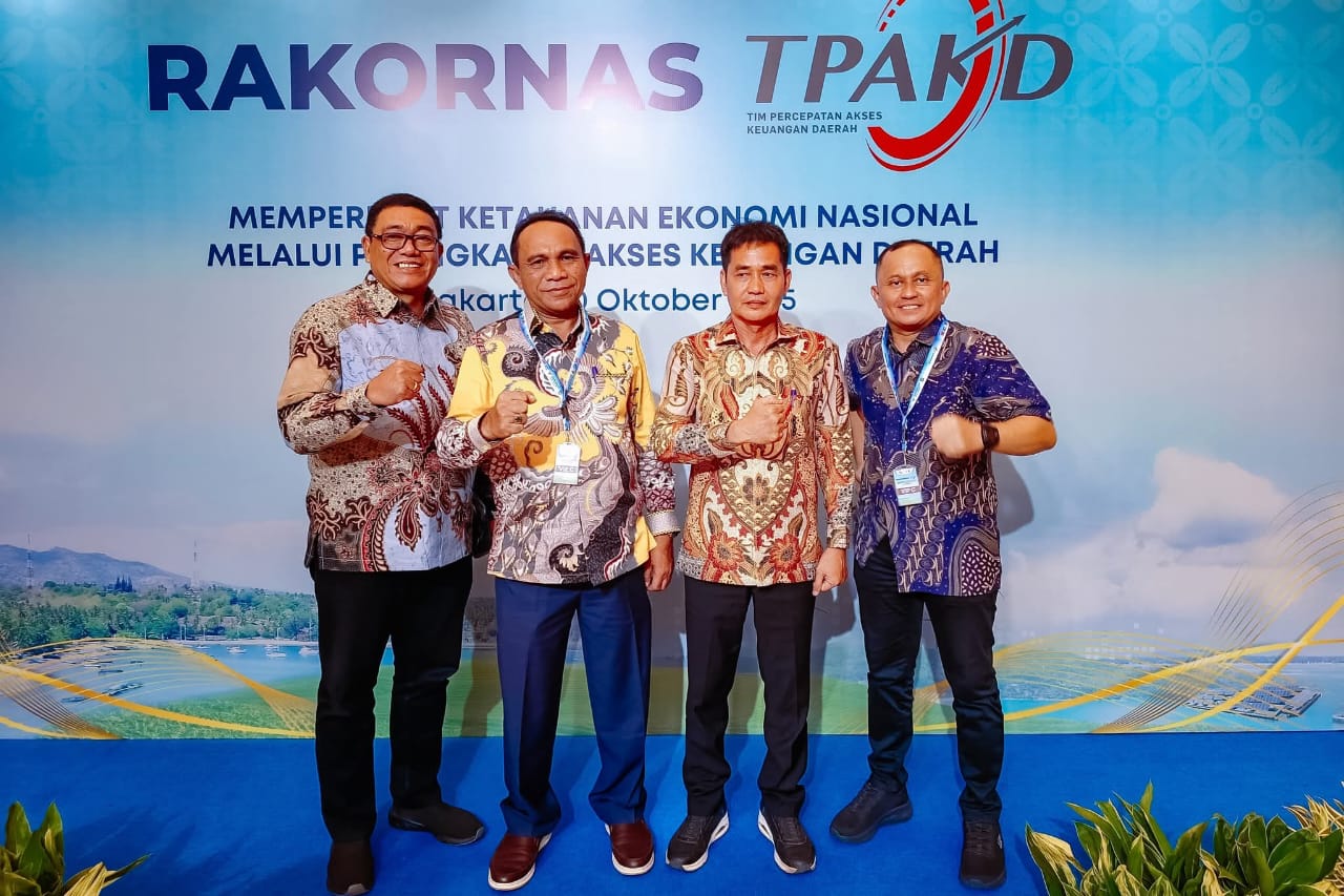 Didampingi Sekretaris Daerah Ir. Musda Guntur, MM, Kepala BPKAD Delfia Parenta, ST, dan Kepala Bapenda Agung Satria Ponga, ST, MT, Bupati Delis mengikuti Rapat Koordinasi Nasional (Rakornas) Tim Percepatan Akses Keuangan Daerah (TPAKD) Tahun 2025 yang diselenggarakan oleh Otoritas Jasa Keuangan (OJK) bekerja sama dengan Kementerian Koordinator Bidang Perekonomian dan Kementerian Dalam Negeri.