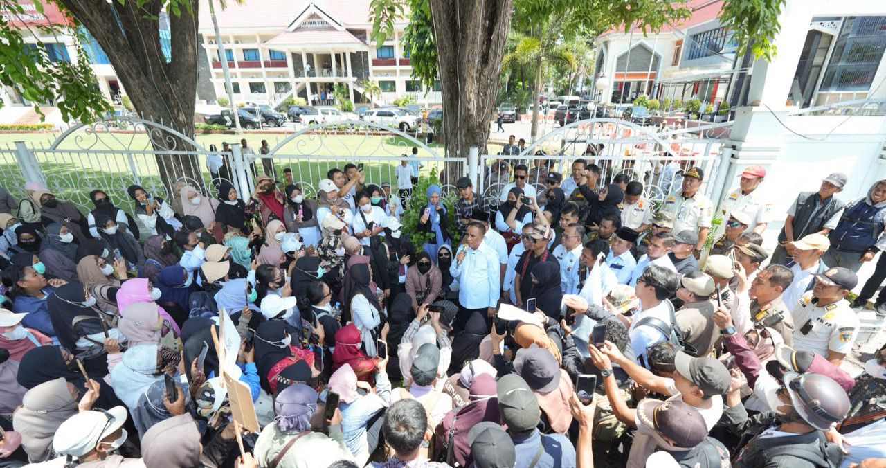 POSONEWS.ID – Gubernur Sulawesi Tengah, Anwar Hafid, turun langsung menemui massa tenaga Pegawai Pemerintah dengan Perjanjian Kerja (P3K) Kabupaten Donggala yang menggelar aksi di halaman Kantor Gubernur Sulawesi Tengah, pada Rabu, (5/11/2025).