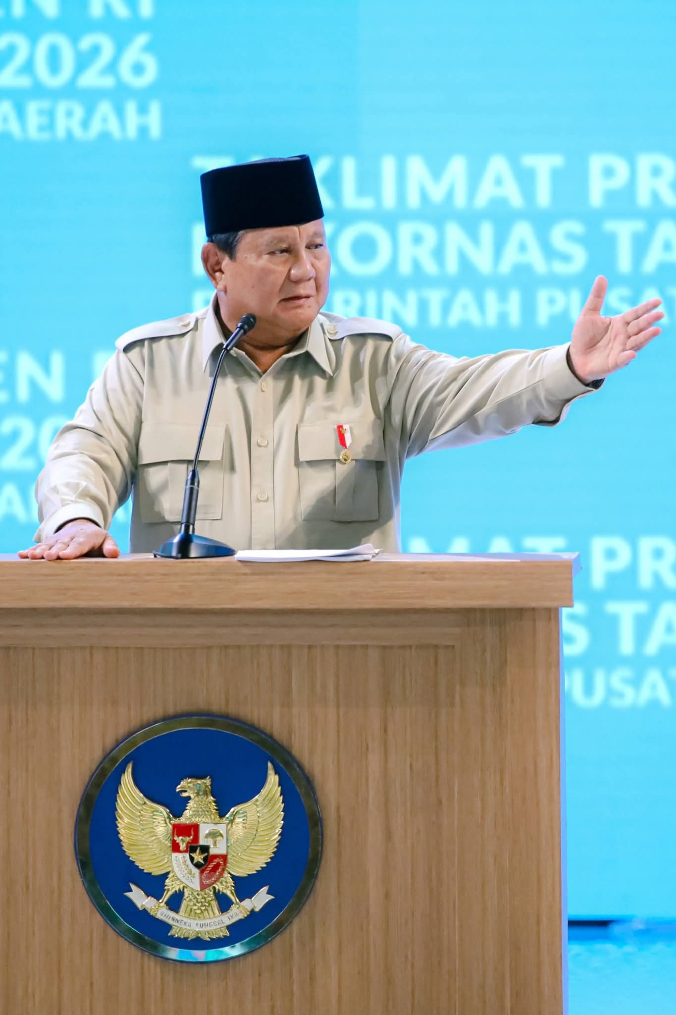 Dalam sambutannya, Presiden Prabowo Subianto menegaskan bahwa Indonesia dibangun atas pengorbanan besar rakyat, sehingga seluruh pemimpin bangsa wajib mengabdi sepenuhnya kepada kepentingan negara dan masyarakat.