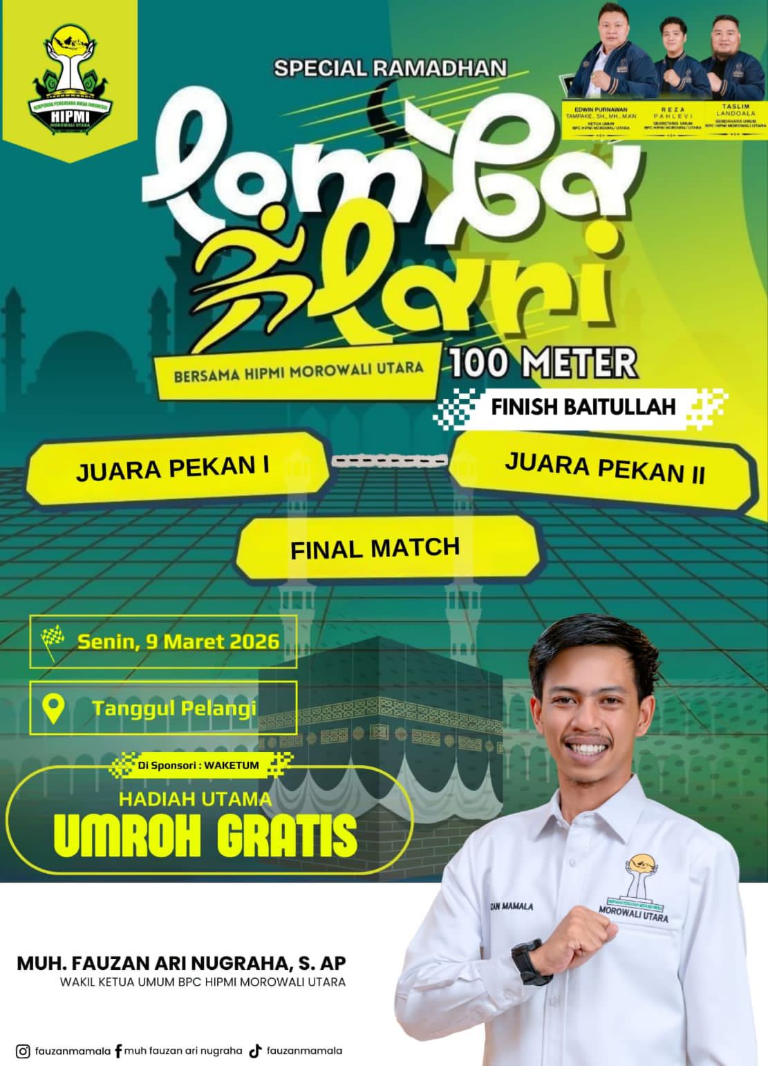 Hadiah spesial tersebut digagas oleh sosok muda Morowali Utara selaku Wakil Ketua Umum BPC HIPMI Morut, Muh. Fauzan Ari Nugraha, S.AP atau yang akrab disapa Fauzan Mamala. Ia ingin menghadirkan kegiatan Ramadan yang berbeda, sekaligus memberi motivasi kepada masyarakat melalui olahraga.