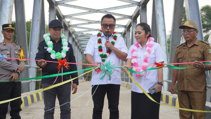 POSONEWS.ID – Bupati Morowali Utara Dr. dr. Delis Julkarson Hehi, MARS meresmikan jembatan Lembo-Tamba di Desa Lembobelala, Kecamatan Lembo Raya, pada Kamis, (2/4/2026).