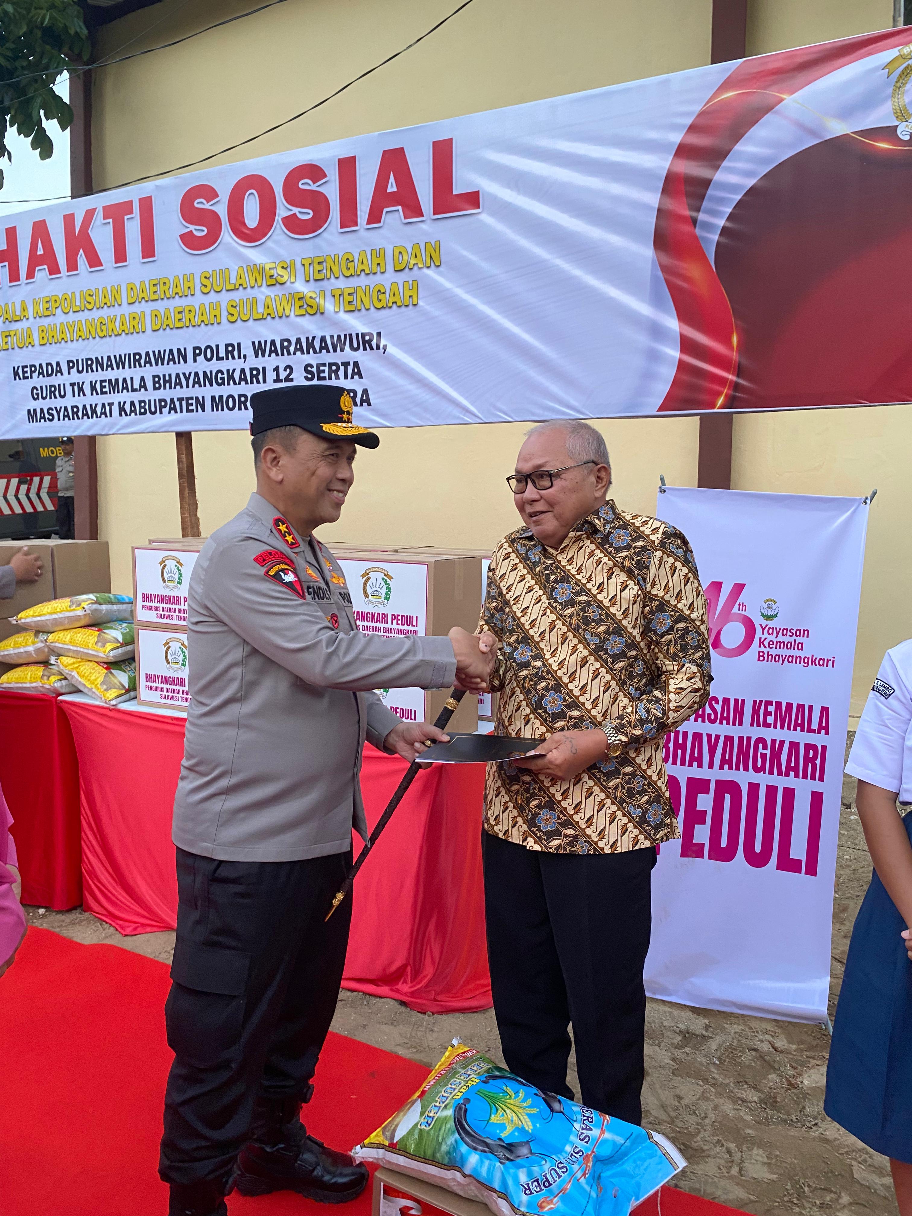 Selain meresmikan GOR, Kapolda juga menyerahkan bantuan sosial kepada para purnawirawan Polri, warakawuri, guru TK Kemala Bhayangkari, dan sejumlah warga Morut.